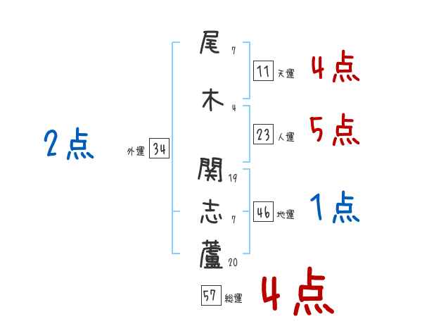 尾木関志蘆さんの画数の鑑定結果