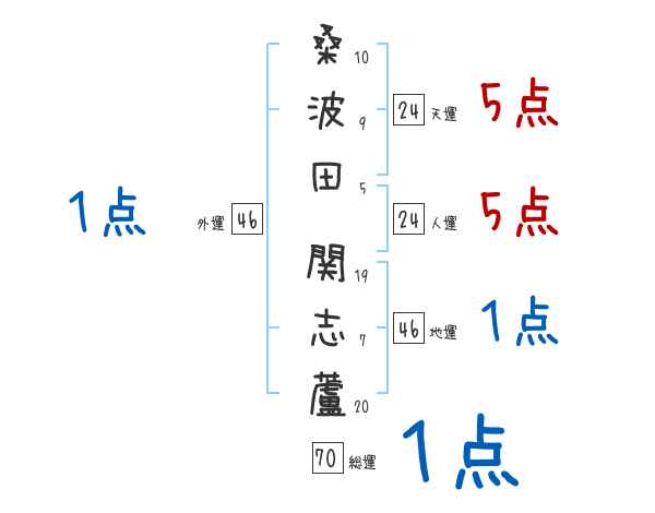 天運![]() | 桑波田関志蘆さんの天運は24画の5つ星!家庭運が良く順調な人生。金運にも恵まれる。 家系が持つ宿命的な運勢を表します。祖先から受け継いだ苗字ですので自分の力が及びません。家柄を象徴します。 |