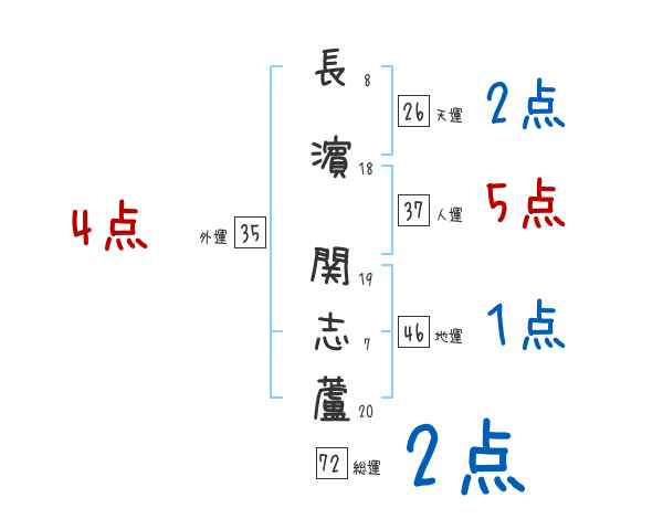 総運![]() | 長濵関志蘆さんの総運は72画の2つ星!災難が多く不安定な生活にならないように注意。明暗のある人生かも。 あなたの人生を表す1番重要な運勢です。生涯を通じて影響する総合運となり、主に50歳以降の晩年期に影響を及ぼします。 |