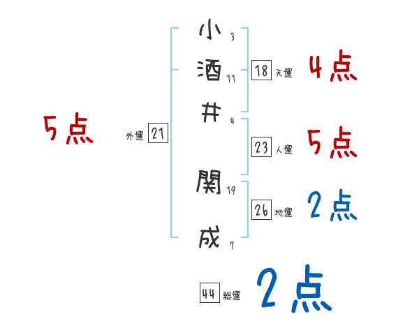 小酒井関成さんの画数の鑑定結果