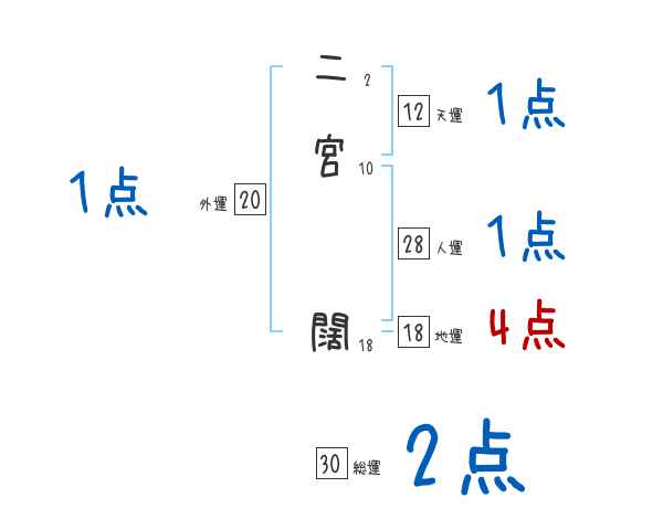 家系が持つ宿命的な運勢を表します。祖先から受け継いだ苗字ですので自分の力が及びません。家柄を象徴します。