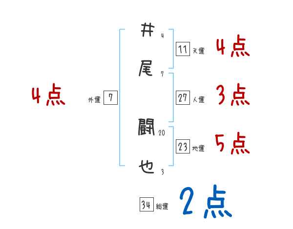 井尾闘也さんの画数の鑑定結果