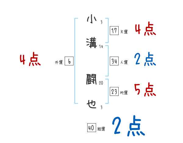小溝闘也さんの画数の鑑定結果