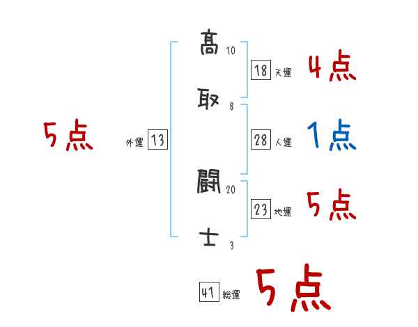 髙取闘士さんの画数の鑑定結果