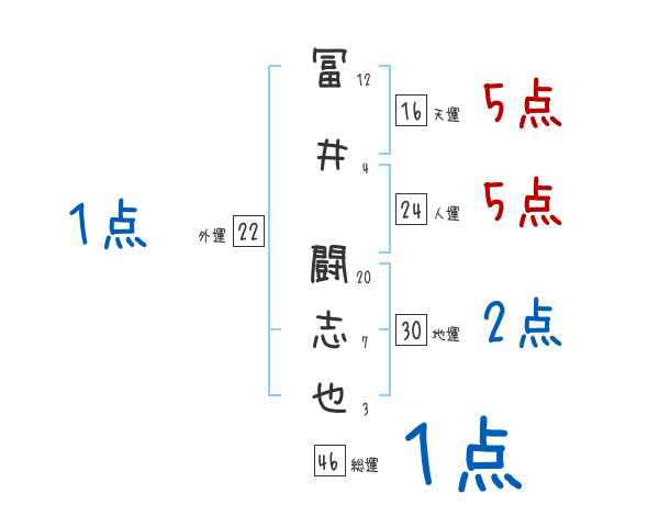 冨井闘志也さんの画数の鑑定結果
