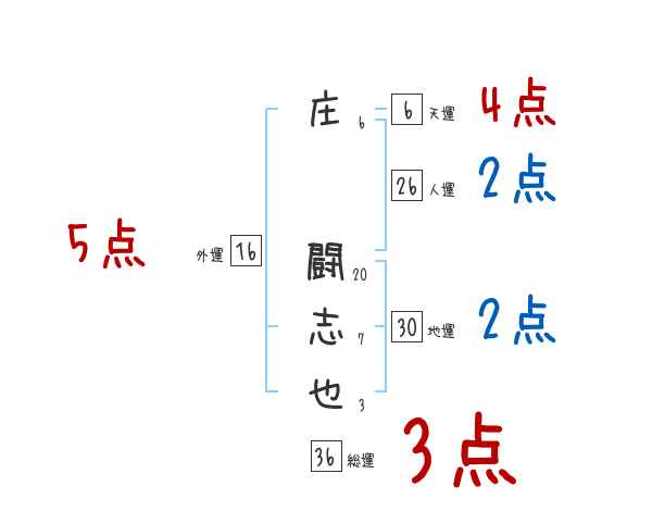 庄闘志也さんの画数の鑑定結果