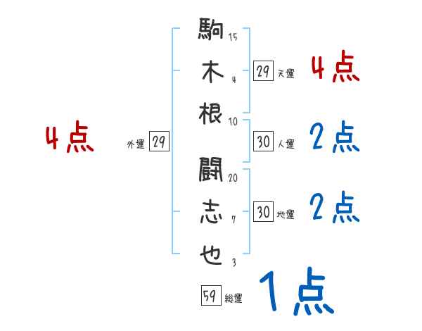 天運![]() | 駒木根闘志也さんの天運は29画の4つ星!完全主義で才能がある。厳格な心の持ち主。 家系が持つ宿命的な運勢を表します。祖先から受け継いだ苗字ですので自分の力が及びません。家柄を象徴します。 |