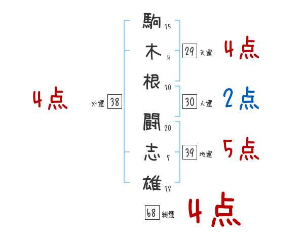 駒木根闘志雄さんの画数の鑑定結果