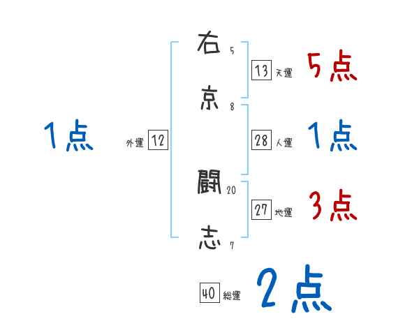 右京闘志さんの画数の鑑定結果