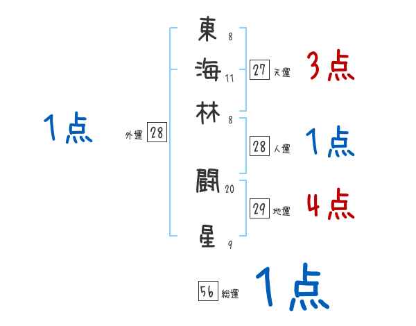 外運![]() | 東海林闘星さんの外運は28画の1つ星!家庭環境に注意。スポーツで活躍できる能力があるかも。 生活面を象徴する運勢です。外部から受ける影響力を表し、結婚運、家庭運や職場、環境への順応性を表します。 |