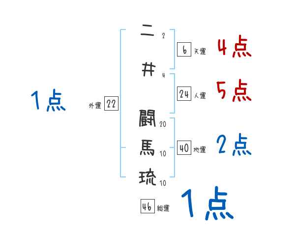 二井闘馬琉さんの画数の鑑定結果