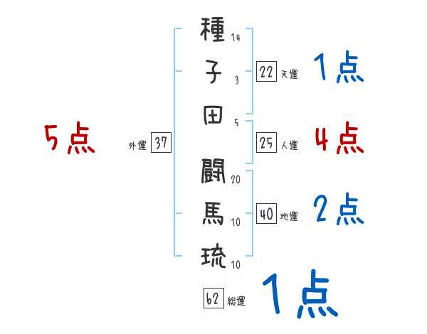 種子田闘馬琉さんの画数の鑑定結果