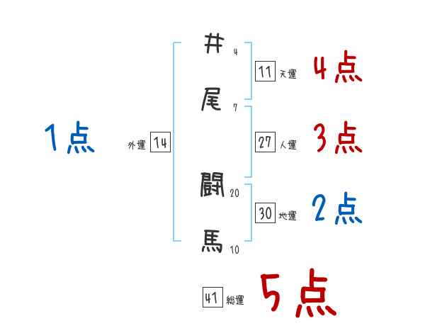 井尾闘馬さんの画数の鑑定結果