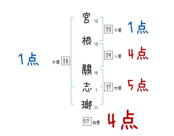 総運![]() | 宮根關志瑯さんの総運は57画の4つ星!向上心があり人望がある。地位を得る。 あなたの人生を表す1番重要な運勢です。生涯を通じて影響する総合運となり、主に50歳以降の晩年期に影響を及ぼします。 |
