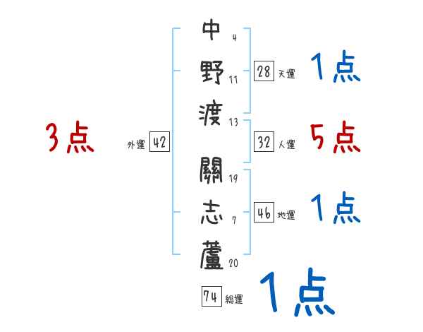 人運![]() | 中野渡關志蘆さんの人運は32画の5つ星!柔軟性があり成功する。チャンスが多く金運が良い。 性格や才能などを表す2番目に重要な運勢です。人間関係や協調性、社会的な成功に影響します。主に20歳から50歳ぐらいまでの中年期の運勢を表します。 |