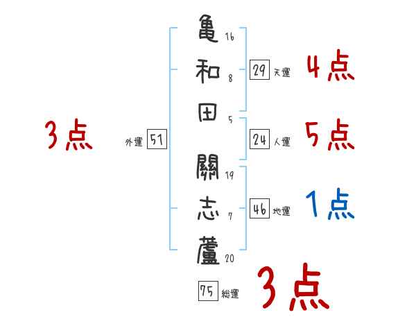 亀和田關志蘆さんの画数の鑑定結果
