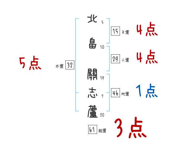 外運![]() | 北畠關志蘆さんの外運は32画の5つ星!柔軟性があり成功する。チャンスが多く金運が良い。 生活面を象徴する運勢です。外部から受ける影響力を表し、結婚運、家庭運や職場、環境への順応性を表します。 |
