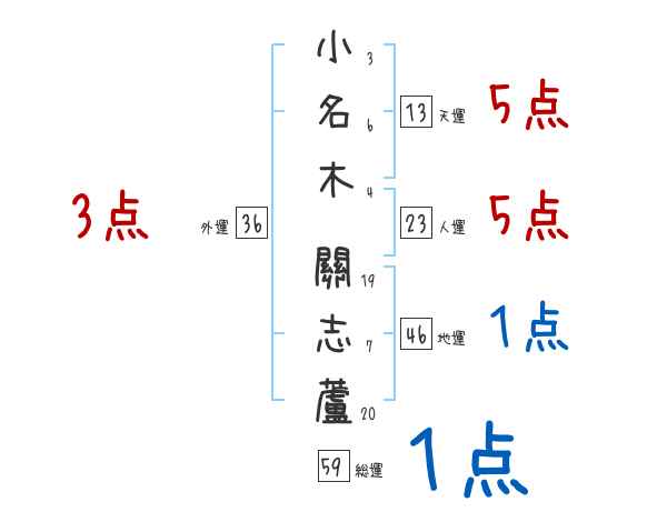 小名木關志蘆さんの画数の鑑定結果