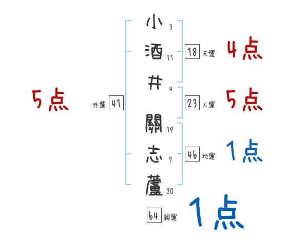 小酒井關志蘆さんの画数の鑑定結果
