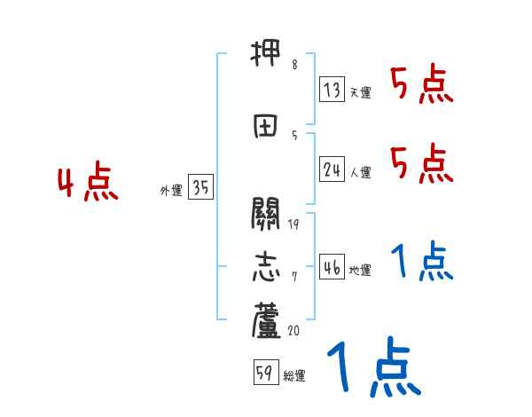 押田關志蘆さんの画数の鑑定結果