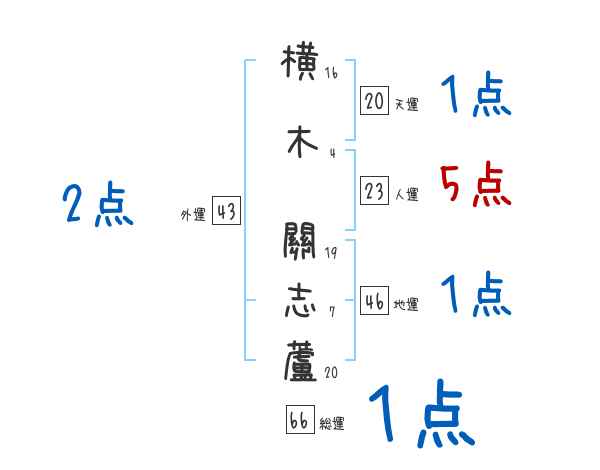 横木關志蘆さんの画数の鑑定結果