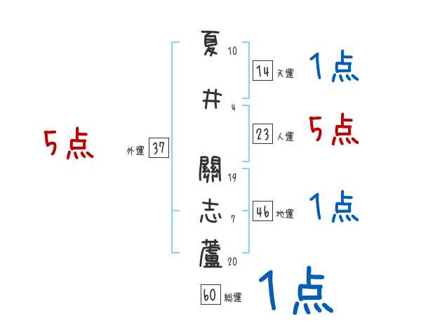夏井關志蘆さんの画数の鑑定結果