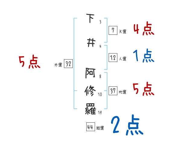 下井阿修羅さんの画数の鑑定結果