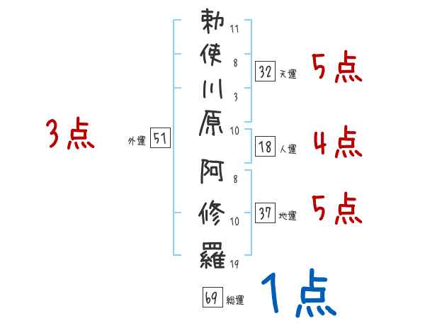 勅使川原阿修羅さんの画数の鑑定結果