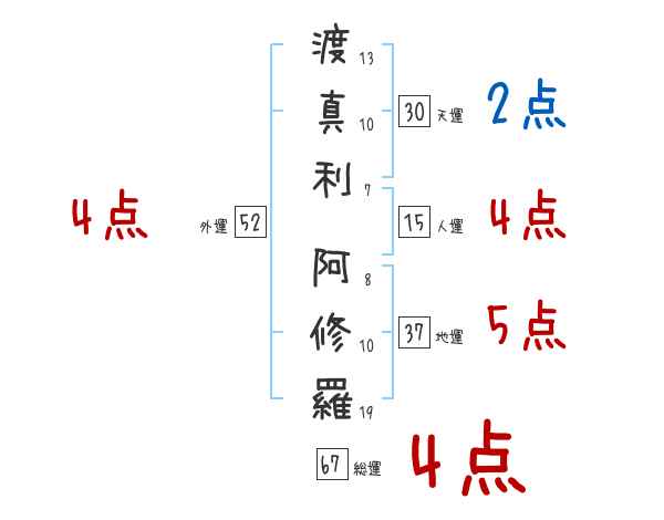 渡真利阿修羅さんの画数の鑑定結果