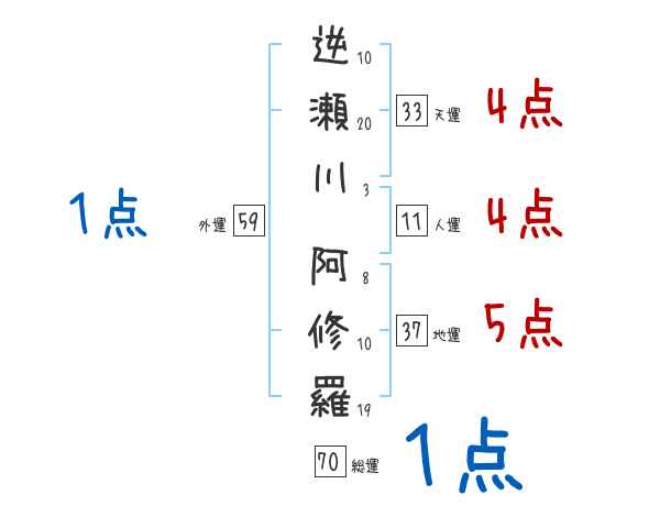 逆瀬川阿修羅さんの画数の鑑定結果