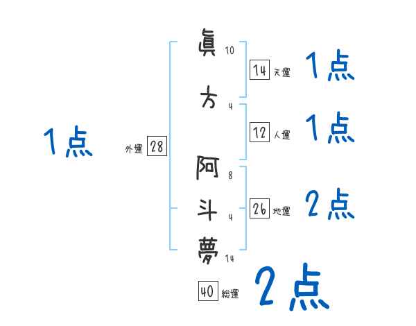 眞方阿斗夢さんの画数の鑑定結果