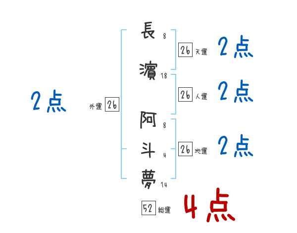 長濵阿斗夢さんの画数の鑑定結果