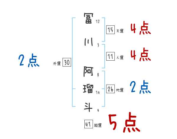天運![]() | 冨川阿瑠斗さんの天運は15画の4つ星!人徳があり出世する。順調に物事を進め円満な人生。 家系が持つ宿命的な運勢を表します。祖先から受け継いだ苗字ですので自分の力が及びません。家柄を象徴します。 |