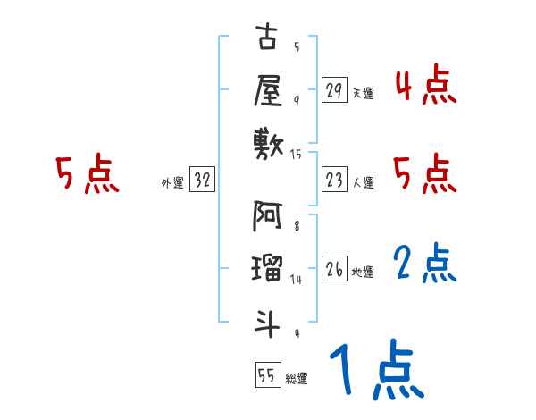 古屋敷阿瑠斗さんの画数の鑑定結果