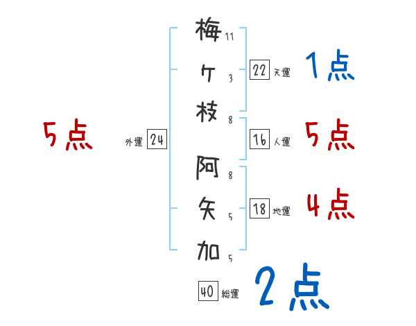 梅ヶ枝阿矢加さんの画数の鑑定結果