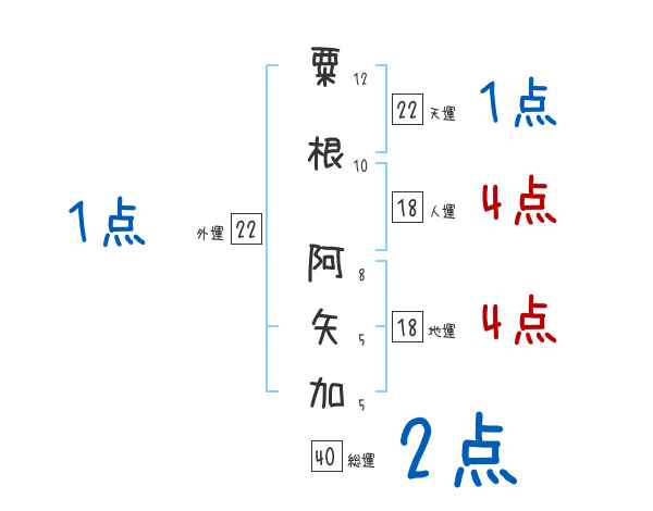 粟根阿矢加さんの画数の鑑定結果