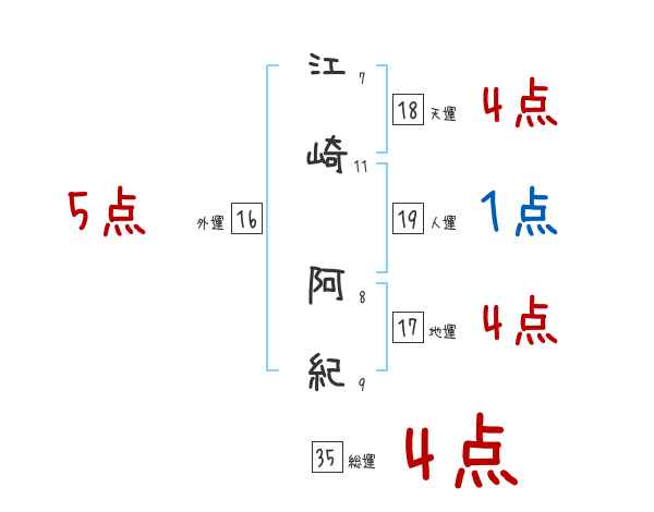 江崎阿紀さんの画数の鑑定結果