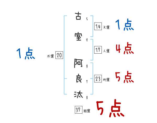 古室阿良汰さんの画数の鑑定結果