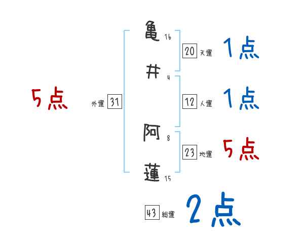 亀井阿蓮さんの画数の鑑定結果