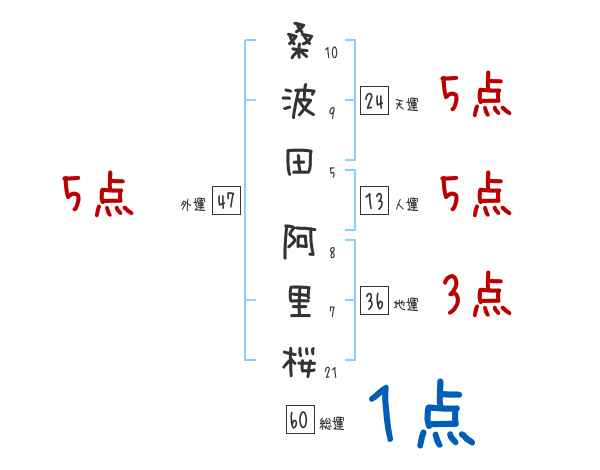 桑波田阿里桜さんの画数の鑑定結果