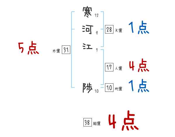寒河江陟さんの画数の鑑定結果