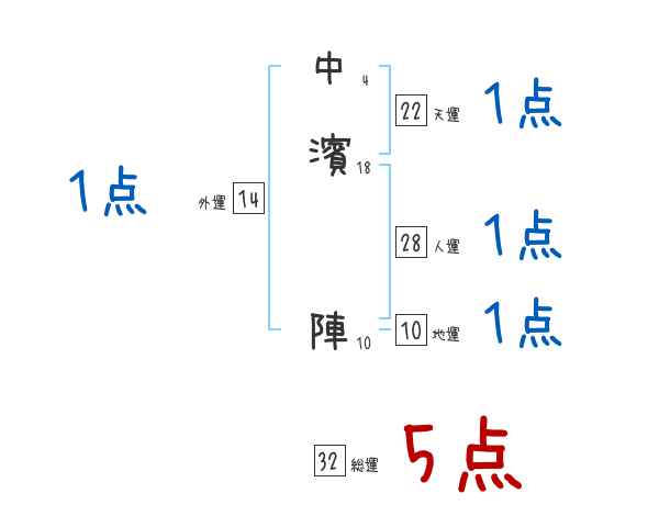 中濱陣さんの画数の鑑定結果
