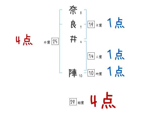 奈良井陣さんの画数の鑑定結果