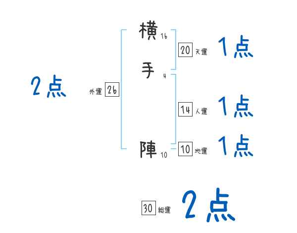 横手陣さんの画数の鑑定結果