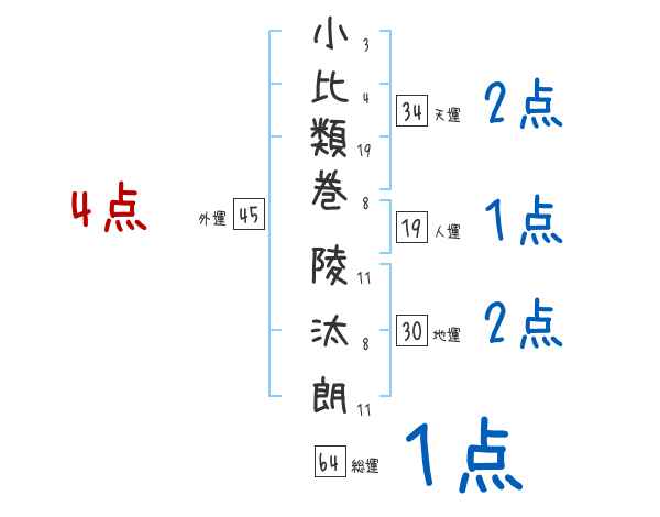 小比類巻陵汰朗さんの外運は45画の4つ星