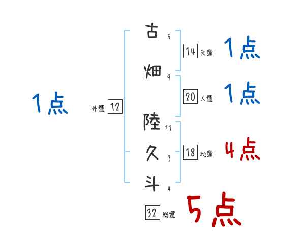 総運![]() | 古畑陸久斗さんの総運は32画の5つ星!柔軟性があり成功する。チャンスが多く金運が良い。 あなたの人生を表す1番重要な運勢です。生涯を通じて影響する総合運となり、主に50歳以降の晩年期に影響を及ぼします。 |