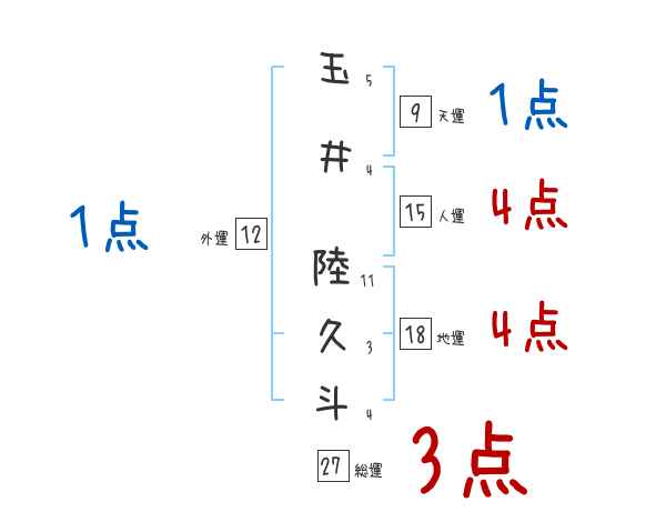 玉井陸久斗さんの画数の鑑定結果