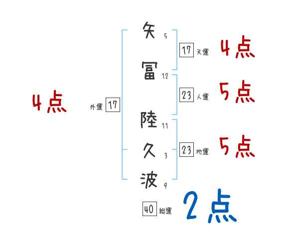 矢冨陸久波さんの画数の鑑定結果