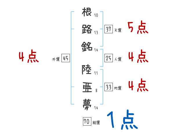 根路銘陸亜夢さんの画数の鑑定結果