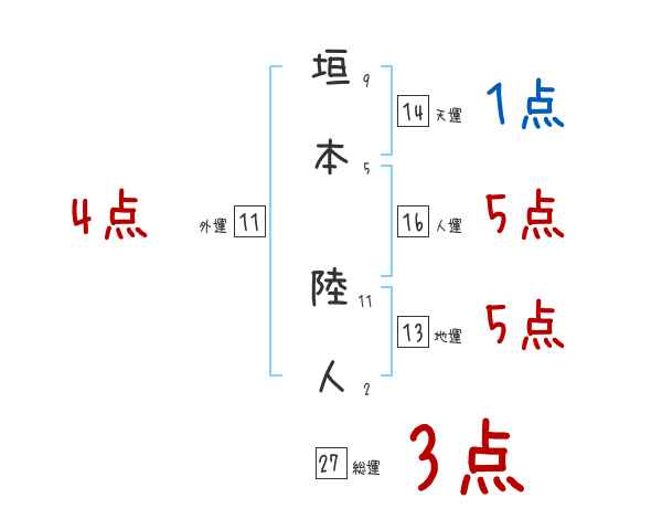 垣本陸人さんの画数の鑑定結果